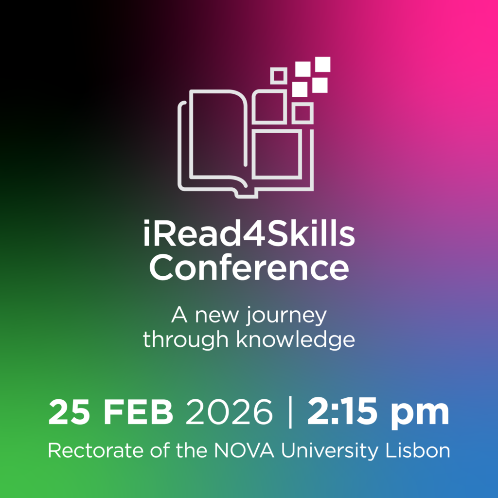 The iRead4Skills Final Conference will take place on 25 February 2026 from 14:15 CET at the Rectorate of NOVA University Lisbon (Auditorium B). The event will be held in a hybrid format, with the possibility to attend either onsite in Lisbon or online.Under the title “A new journey through knowledge”, the conference will present the main results of the iRead4Skills project and explore the strategic role of reading as a foundation for future skills development. The event will bring together researchers, practitioners and policy stakeholders to reflect on innovation in literacy and skills policy.Participation is free of charge, but registration is mandatory.